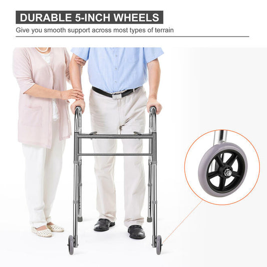 Lightweight Aluminum Folding Walker with 5" PVC Wheels for The Elderly, Load 136kg